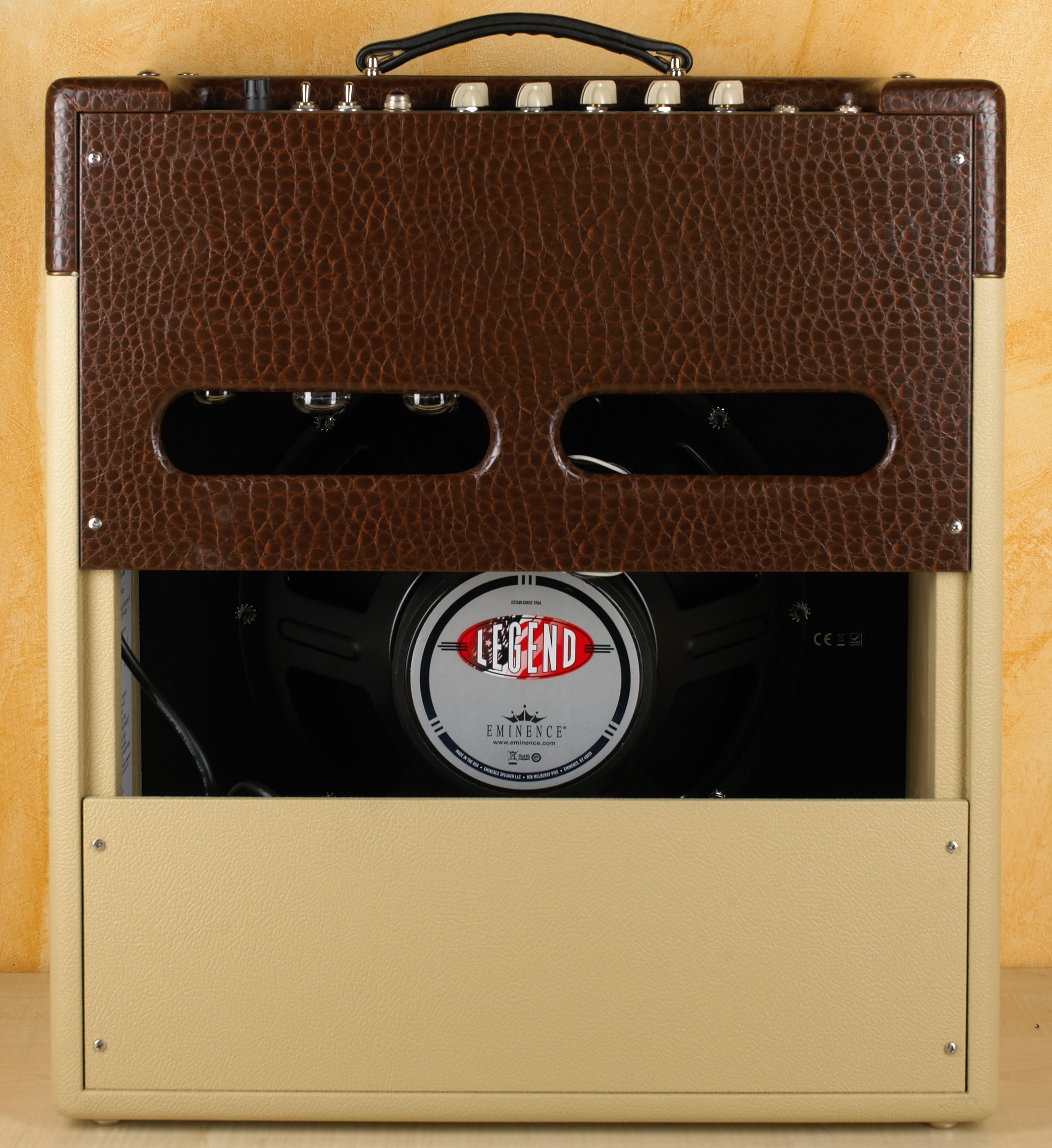 The Cherry Bomb is a fire-breathing dual 6L6 version of our popular “Electro King” amp. The 1X15 Cherry Bomb takes the classic 15w “GA-40 LP” amplifier and juices it up to a full 40W of cathode biased 6L6 vacuum tube power. The additional output section octane allows the feral power of the 5879 preamp tubes that are at the heart of the Cherry Bombs to fully reveal their explosive performance. Extraordinary dynamics and touch sensitivity are the hallmarks of this amplifier. Separate tremolo channel employs the same NOS 6SQ7 as the Electro King for authentic 1950’s wobble. Fully foot-switchable and offered in a classic 2-tone cabinet, the Cherry Bomb is the sonic explosion that you control!