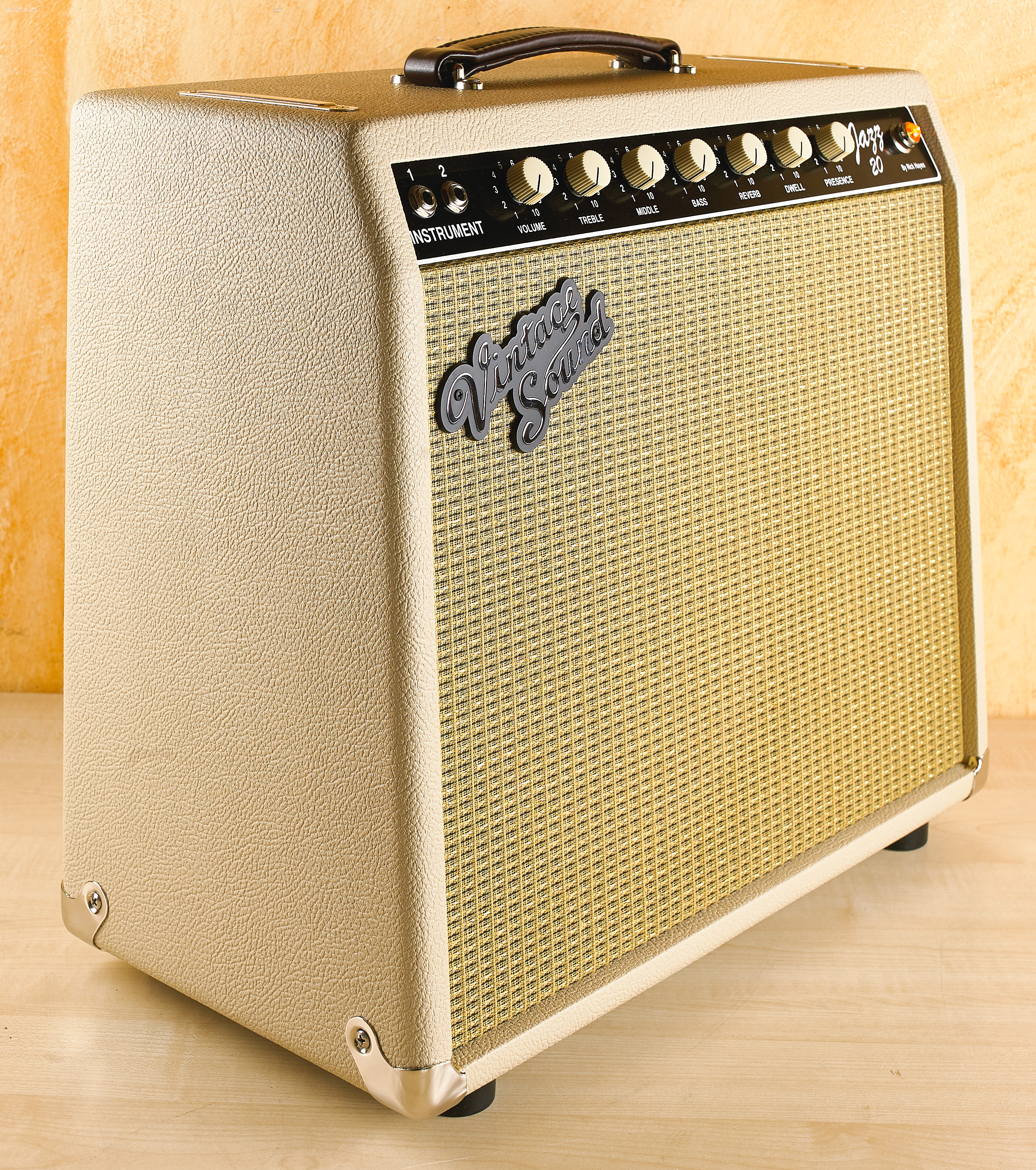 The Vintage Sound Jazz20 is a custom 1x12 combo amplifier that caters specifically to the Jazz guitarist. It's essentially an all hand-wired, all USA made, super-modified Fender Princeton Reverb with the tremolo removed and custom voiced for Jazz. It's based on the "blackface" Fender Princeton Reverb (AA1164) used from 1964-1967, but with several major and significant upgrades (read more below).