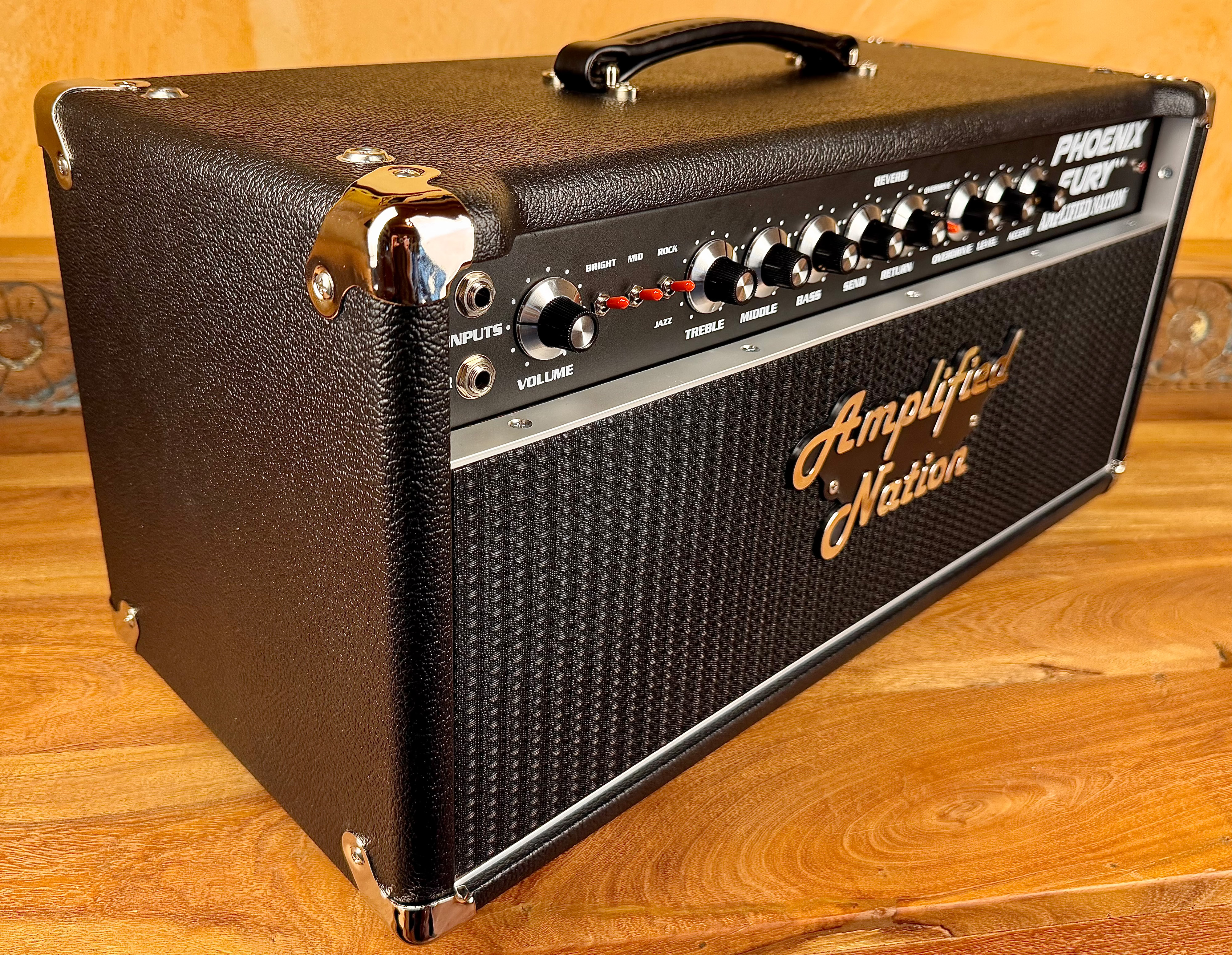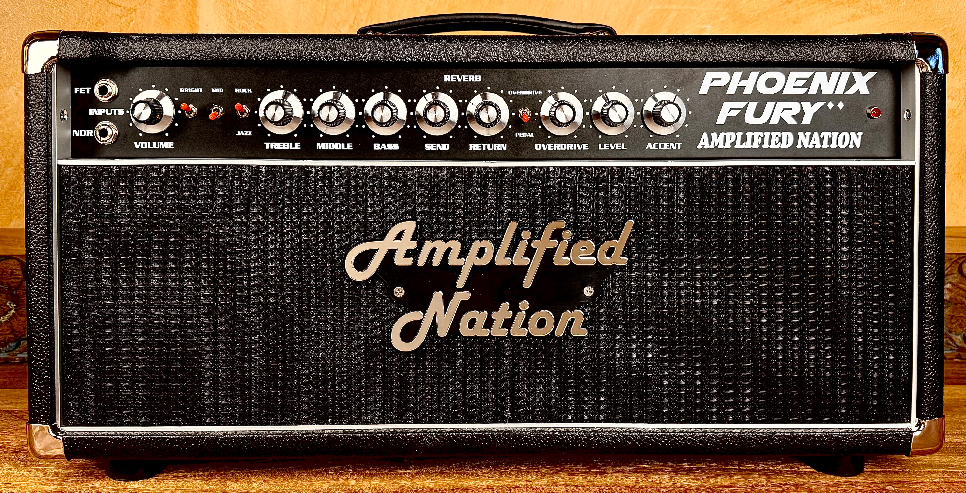 A unique feature of the amp is the ratio controls that are located on the back of the amp. These controls are independent master volumes for each of the respective channels and allow for even more level balancing, great low volume tone, or to capture the essence of a cranked preamp. The output of this amp is strong and robust and the additional gain stages provided from the six-tube preamp are quite evident as the complex voice of the Phoenix Fury organically connects with your guitar. The amp is equipped with a normal input and a FET input that adds a transistor gain stage to drive the preamp a little harder. The bright, deep, and rock/jazz switch offer additional tone settings to give one of the best guitar amplifier experiences available today.
